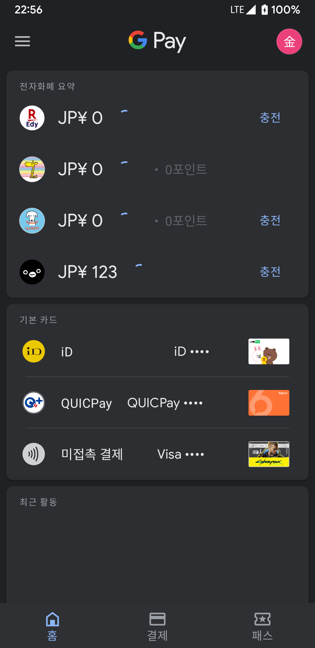 어느샌가 카드가 많아진 구글페이 화면입니다.