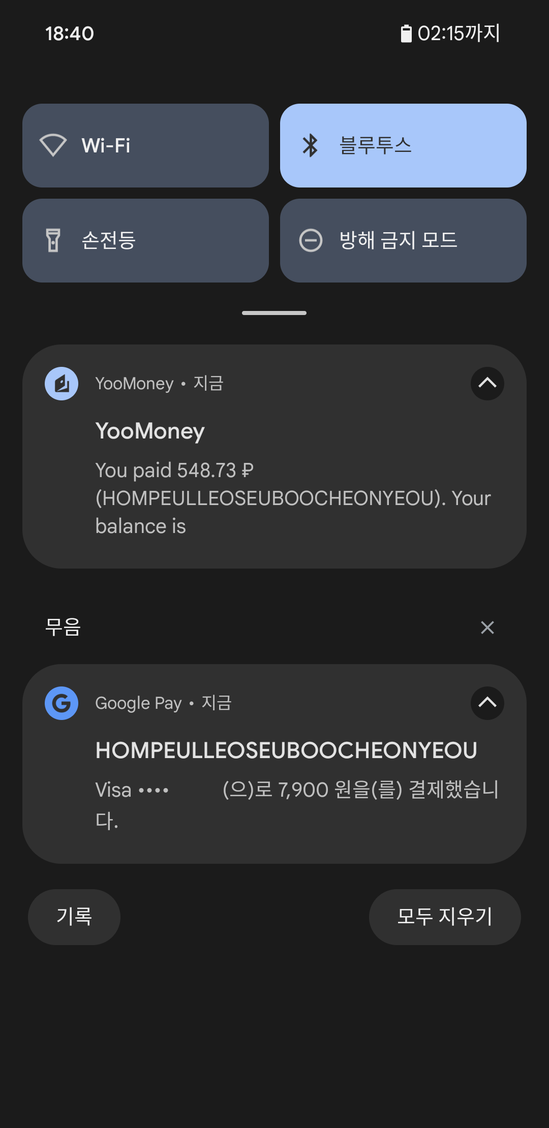 결제가 되면 위처럼 Yoomoney 앱에서 확인을 할 수 있습니다.
