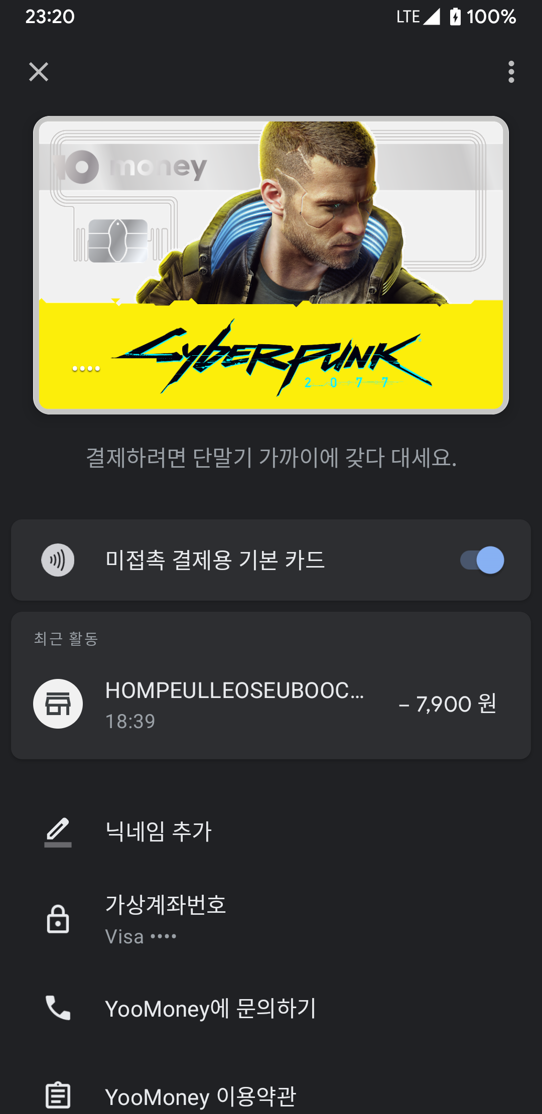 저기에 비자카드 로고가 있는데, 실제로 비자카드로 비접촉결제가 가능했습니다.