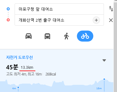 중간에 반납하고 재대여했을때 거리가 이상하게 나오던데, 이게 그대로 적용이 된듯(...)