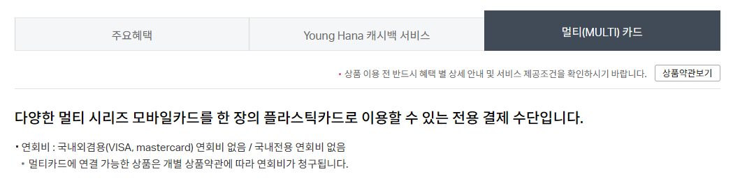 멀티카드란, 하나카드의 멀티 시리즈 카드를 하나의 카드로 사용할 수 있게 하는 카드입니다.