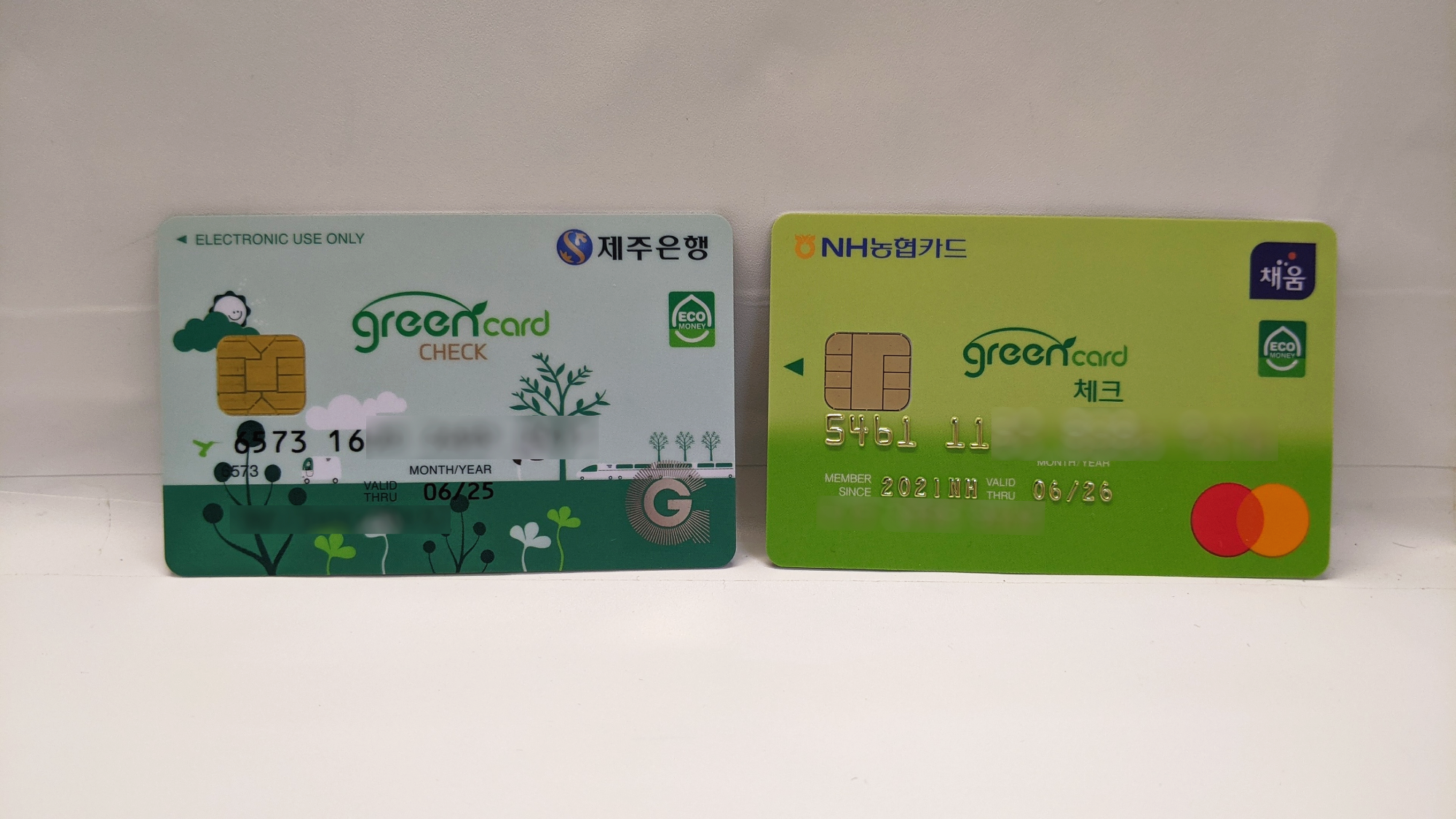 일반적인 그린카드는 좌측 디자인인데, 농협 혼자 저런 디자인을 하고 있네요.