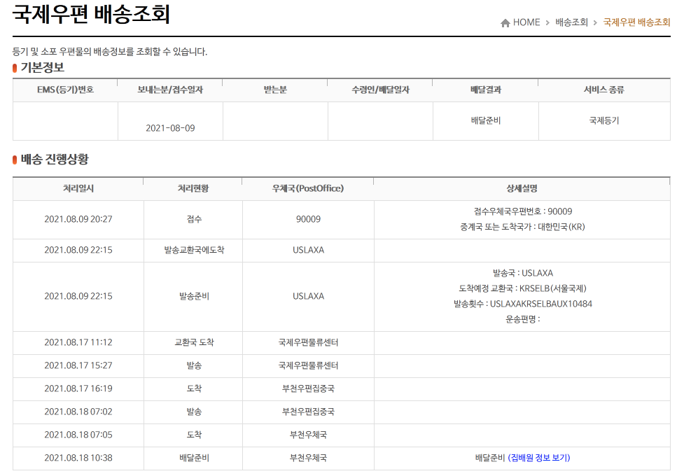이번에 국제우편을 받을 일이 생겼습니다.