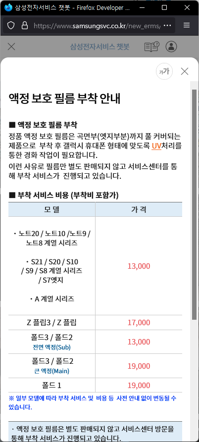 서비스센터 들어가셔서 접수하는 곳으로 가서 보호필름을 붙이러 왔다고 하시면 됩니다.