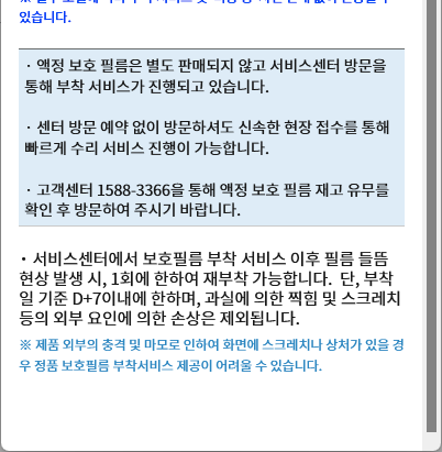 집에 와서 찾아보니 들뜸 현상이 발생해도 7일 이내에 가져오면 1회에 한해서 재부착을 해준다고 합니다.
