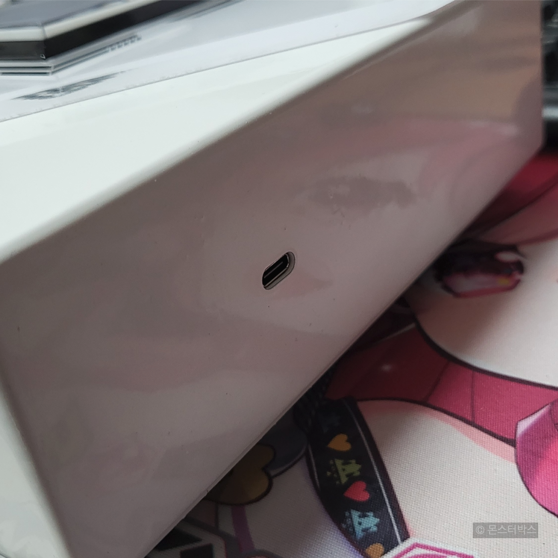 좌측에는 버튼 두 개가 있고, 우측에는 USB-C 포트가 있습니다.