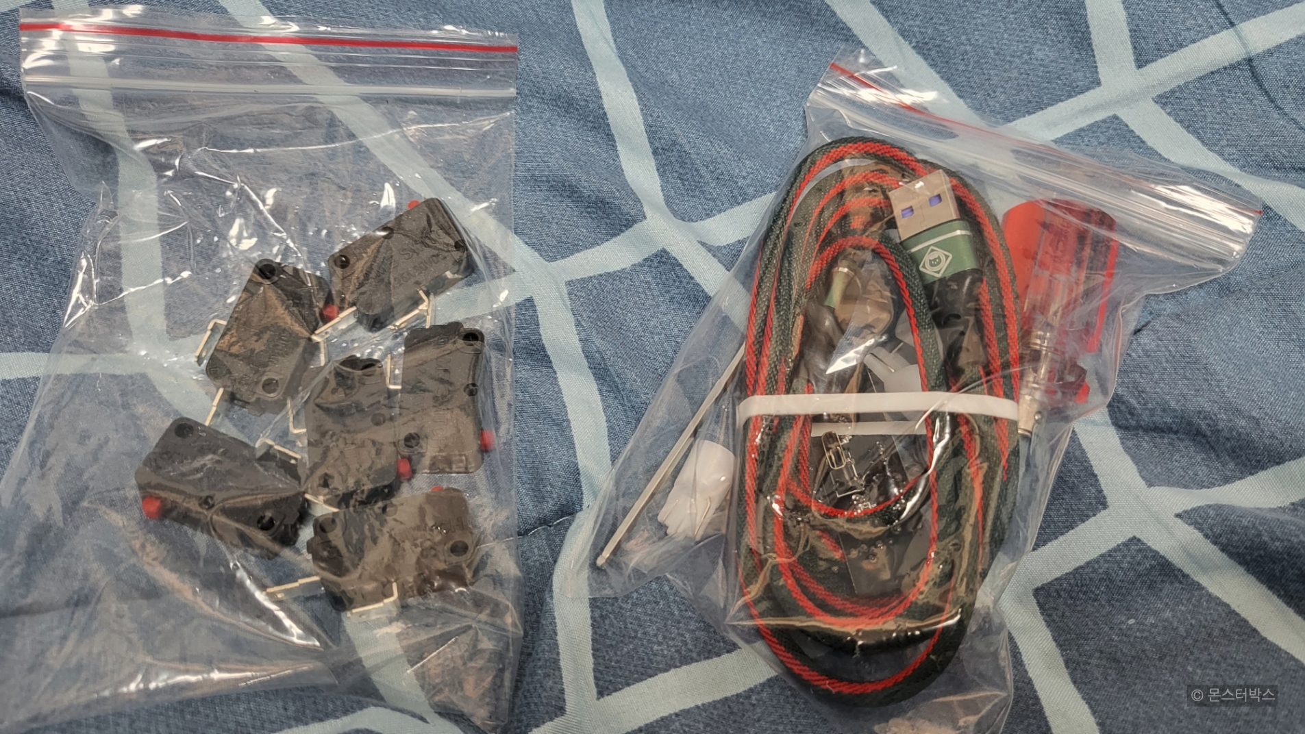 위에는 여분의 스위치 6개와 케이블, 드라이버 등이 들어있습니다.