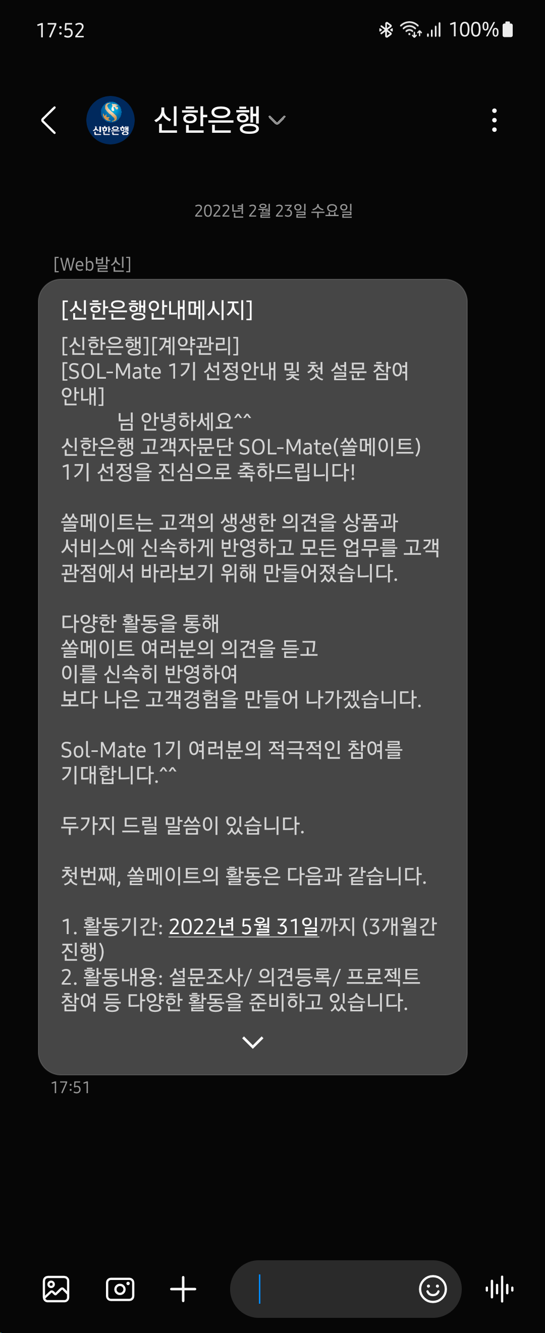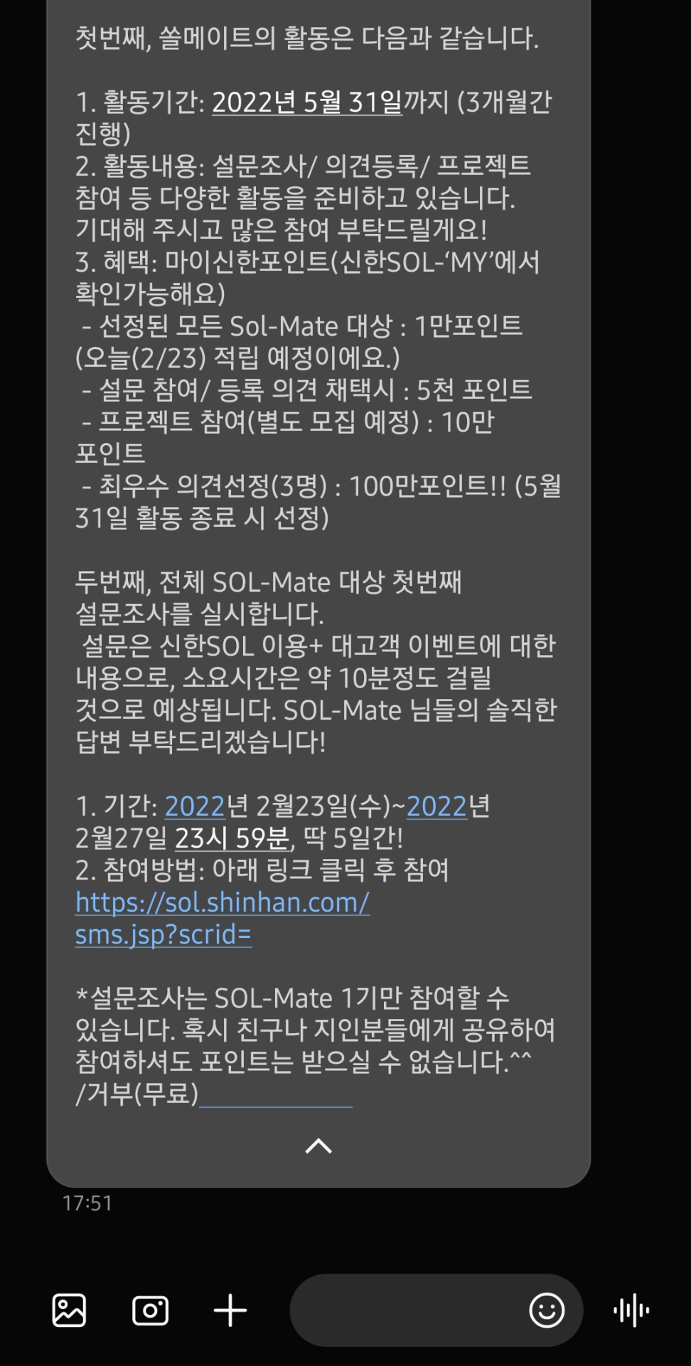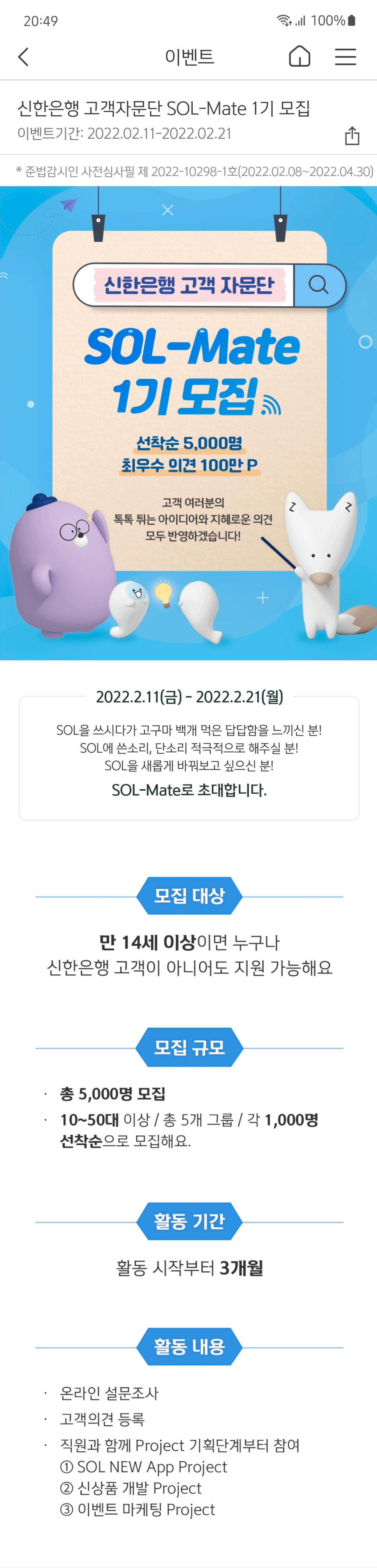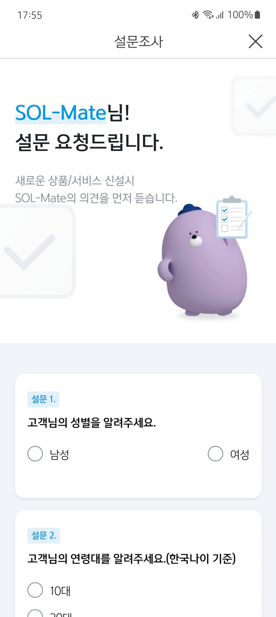 SOL 앱 이용에 관한 설문이었고 딱히 민감한 내용은 없어서 대고객 설문으로 뿌려도 될 내용이었고요