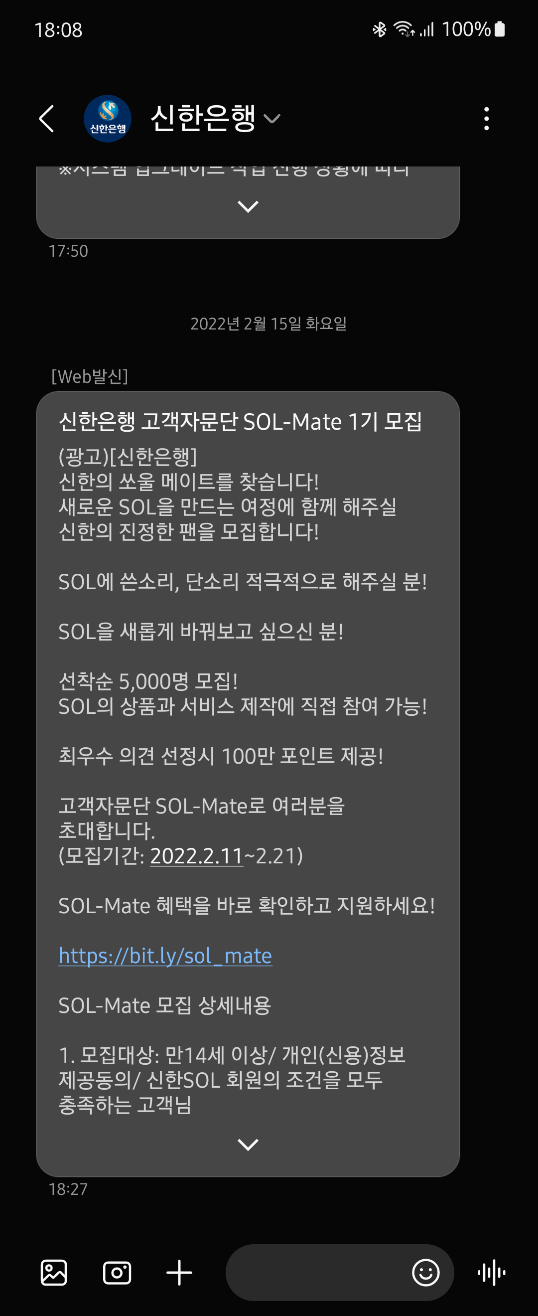 2월 15일에 이런 문자가 왔습니다.
