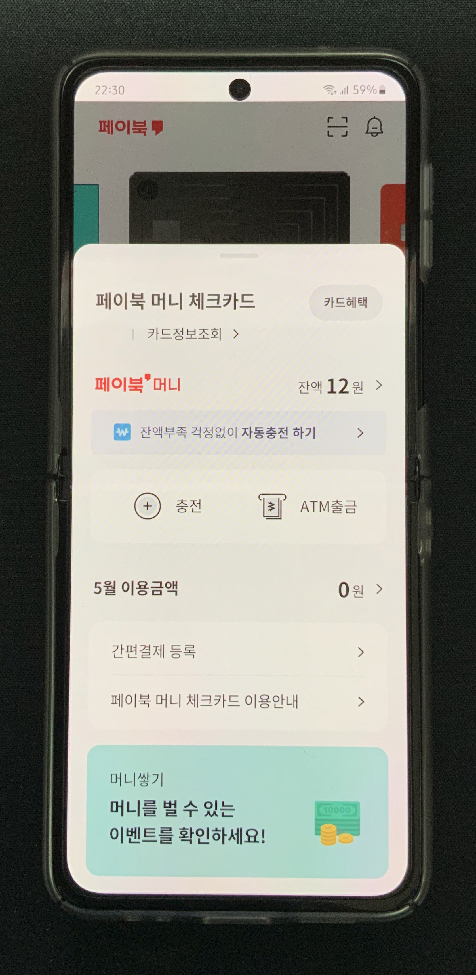 그래서인지 페이북 앱에서 카드 정보를 보면 페이북 머니 체크카드는 페이북 머니 관련 기능이 나옵니다