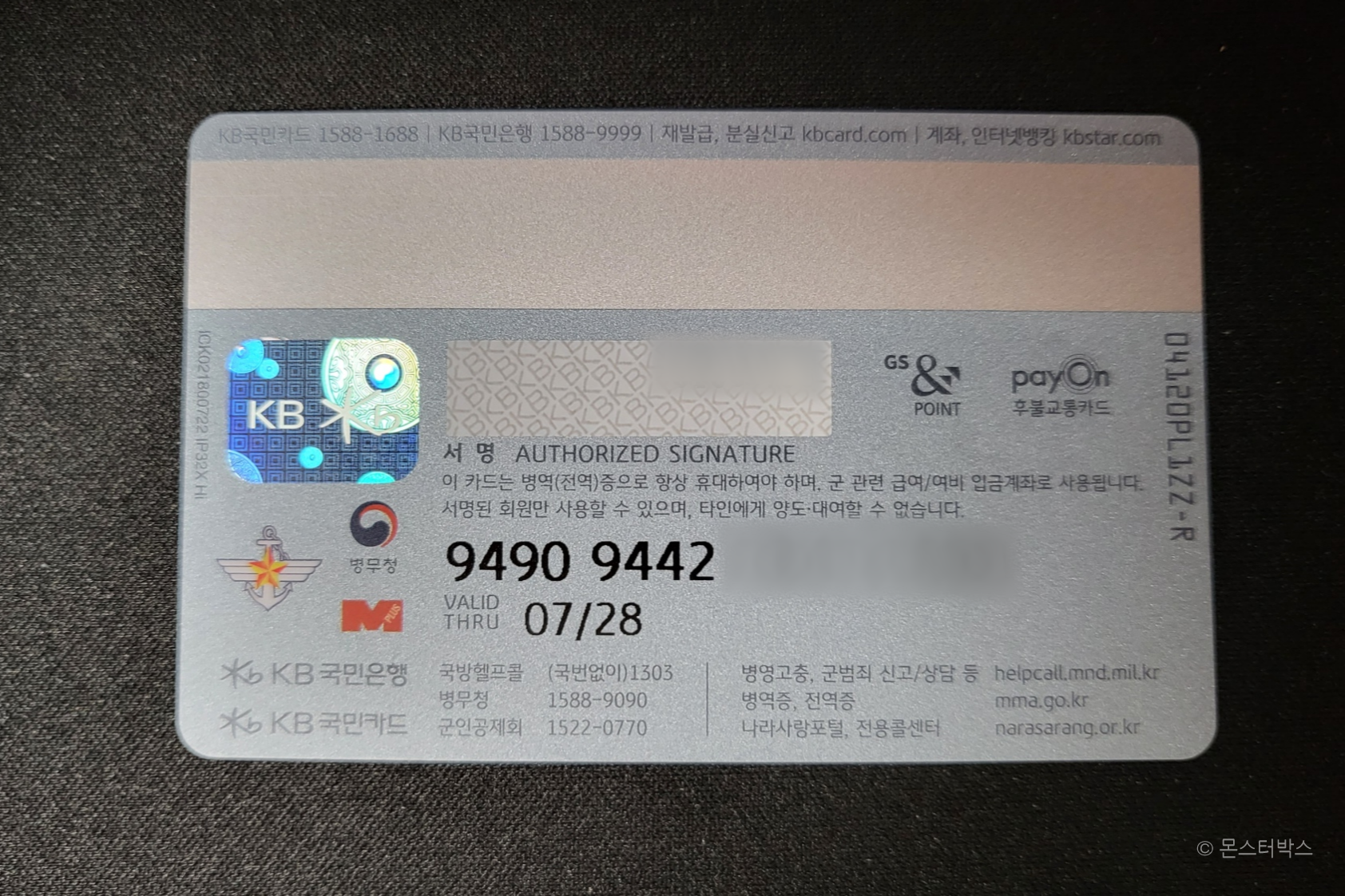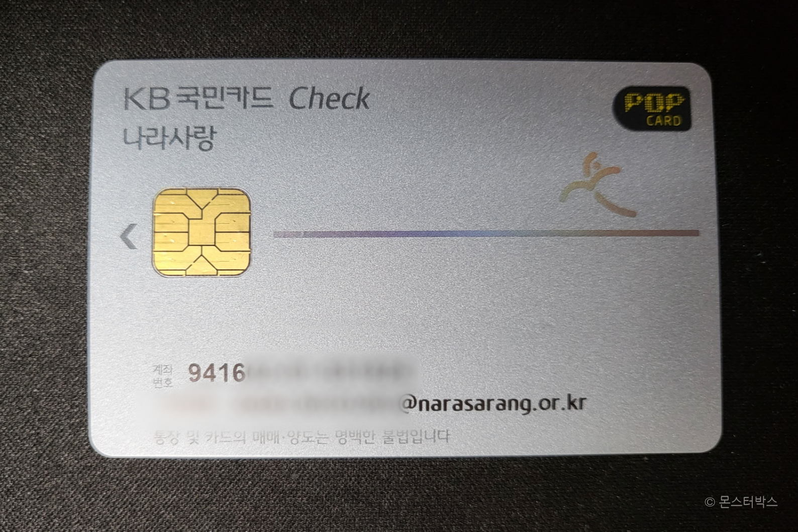 후불교통카드가 강제 탑재이고, 앞에 국민은행 계좌번호와 이름(한글), 나라사랑포털 이메일 주소가 적혀있습니다.