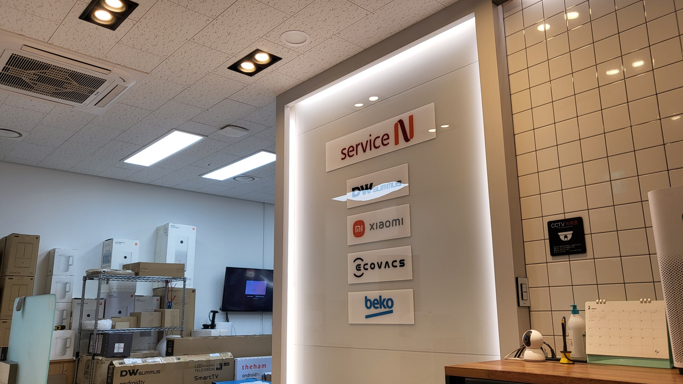 벽에 여러 회사 로고가 있는 걸 보니 샤오미 이외의 회사 제품도 AS를 하나 보네요