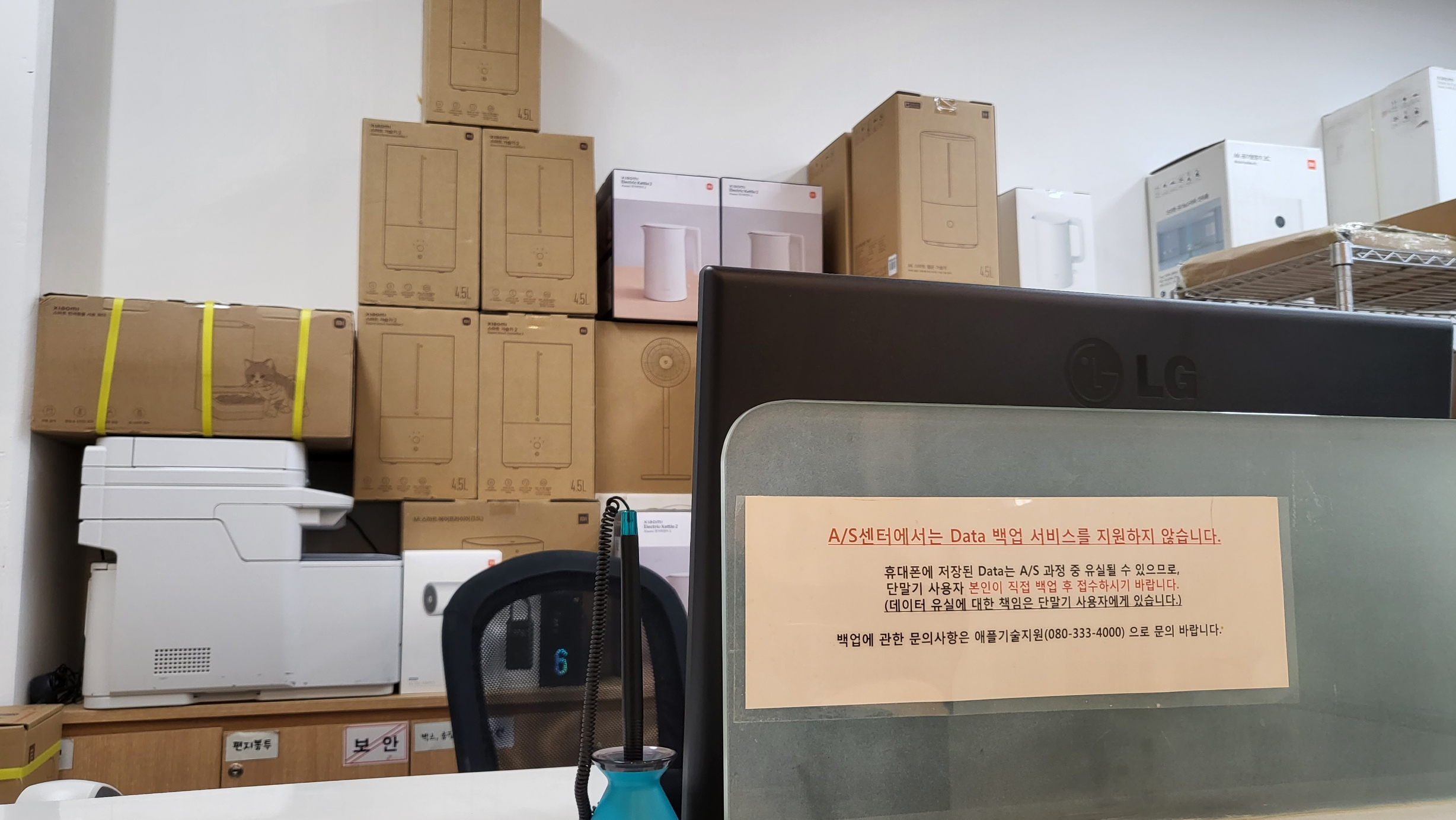 벽에 여러 회사 로고가 있는 걸 보니 샤오미 이외의 회사 제품도 AS를 하나 보네요