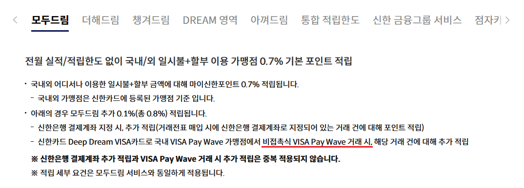 심지어는 아예 컨택리스 결제 시 추가 적립을 해준다고 상품설명서에 못 박아놨네요