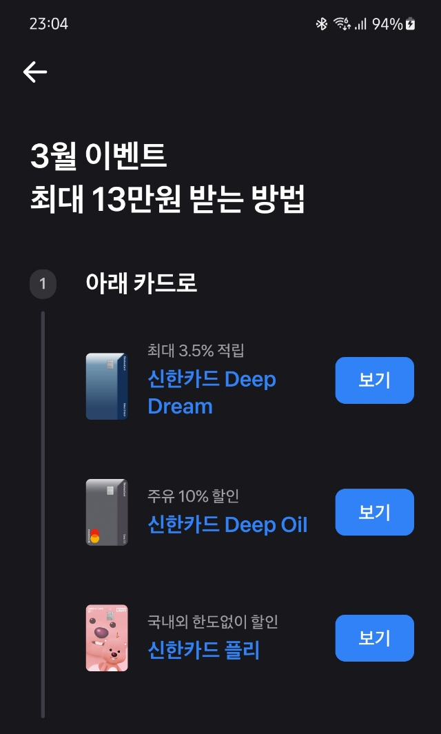 첫 번째는 캐시백 이벤트 대상 카드여서 그렇습니다