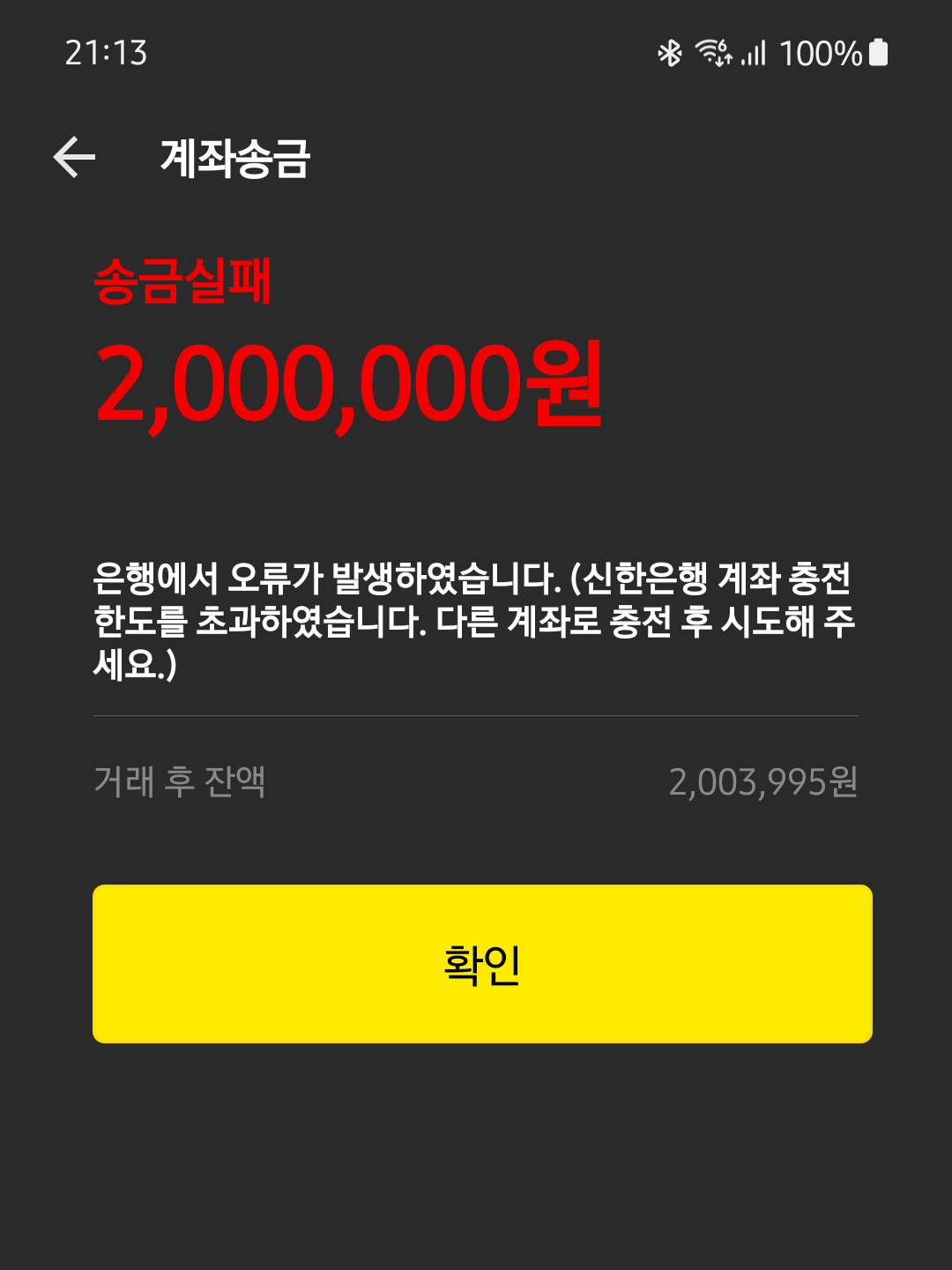 수취계좌를 한도제한 없는 계좌로 해뒀어야 했는데 멍청한 짓을 해버렸네요
