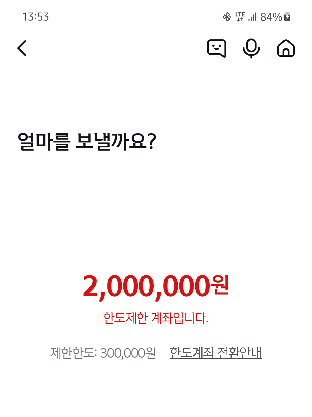 부모님 드리려고 이체를 하려고 했는데 역시나 한도제한계좌라 이체가 안됩니다
