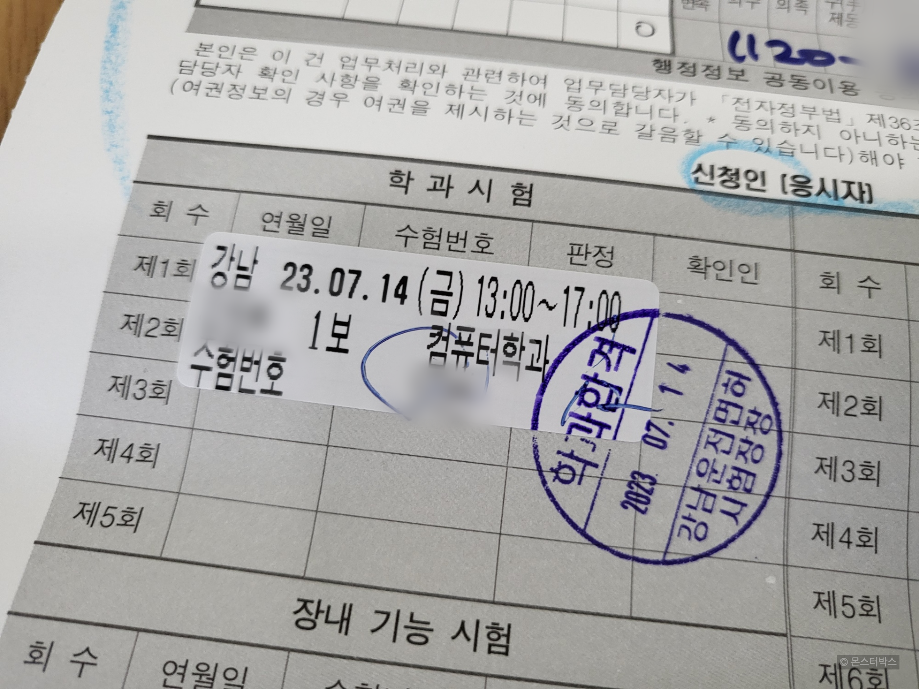 오히려 시험장 앞에서 줄 서면서 대기하는 시간이 더 길었네요