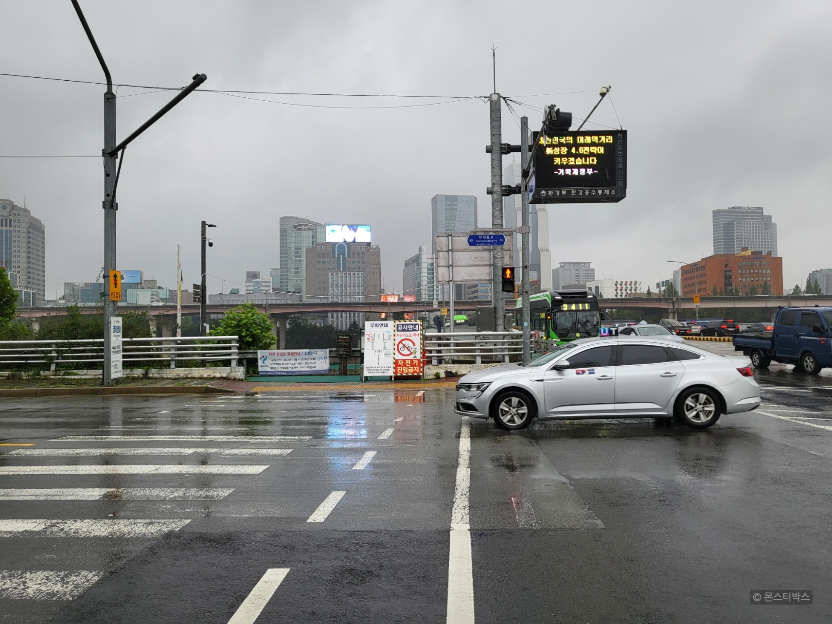 강을 건너면 왼쪽에 서울강남경찰서 건물이 보이는데