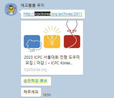 그렇게 해서 ICPC 진행 도우미에 추가선발이 되었고