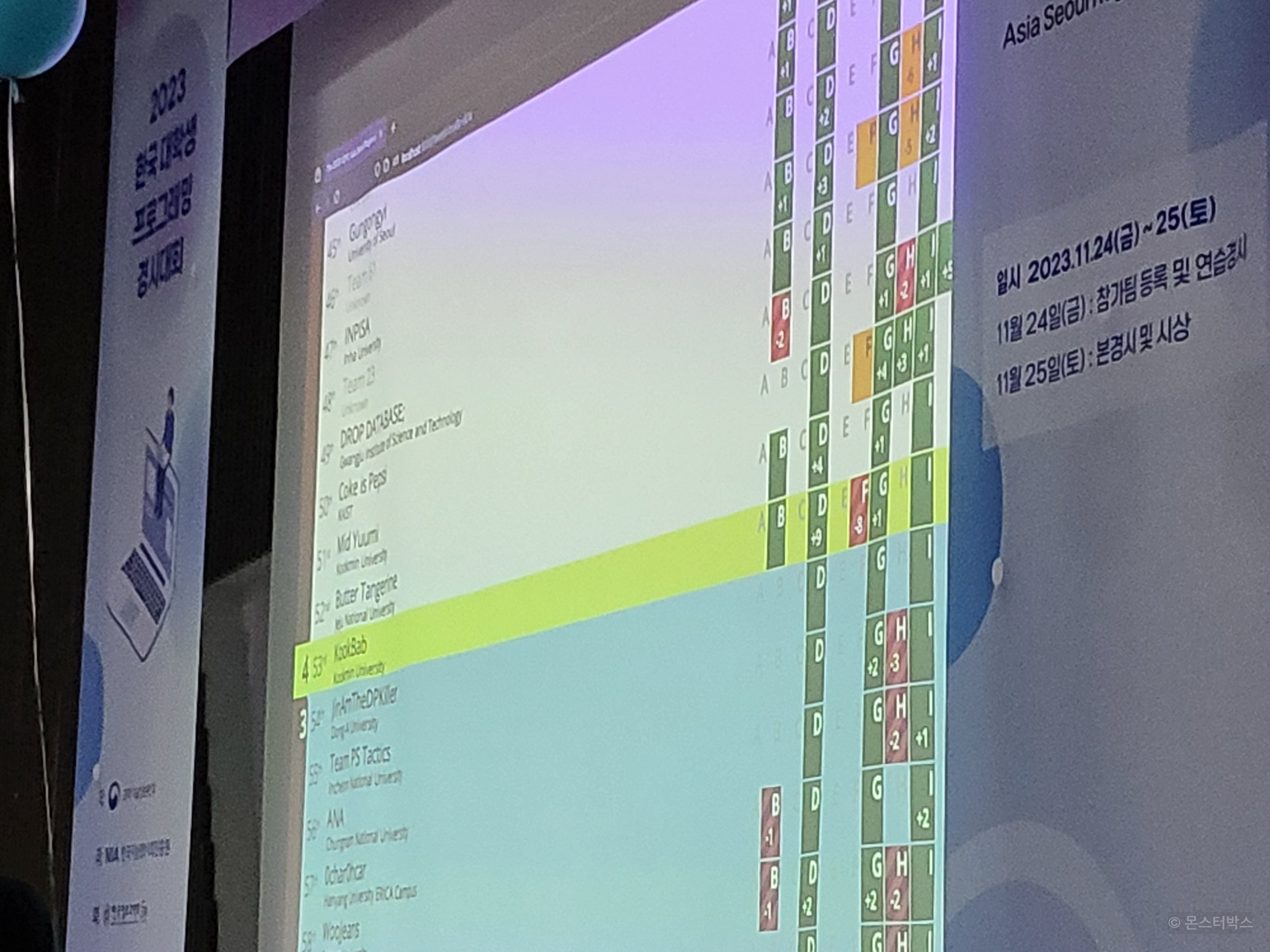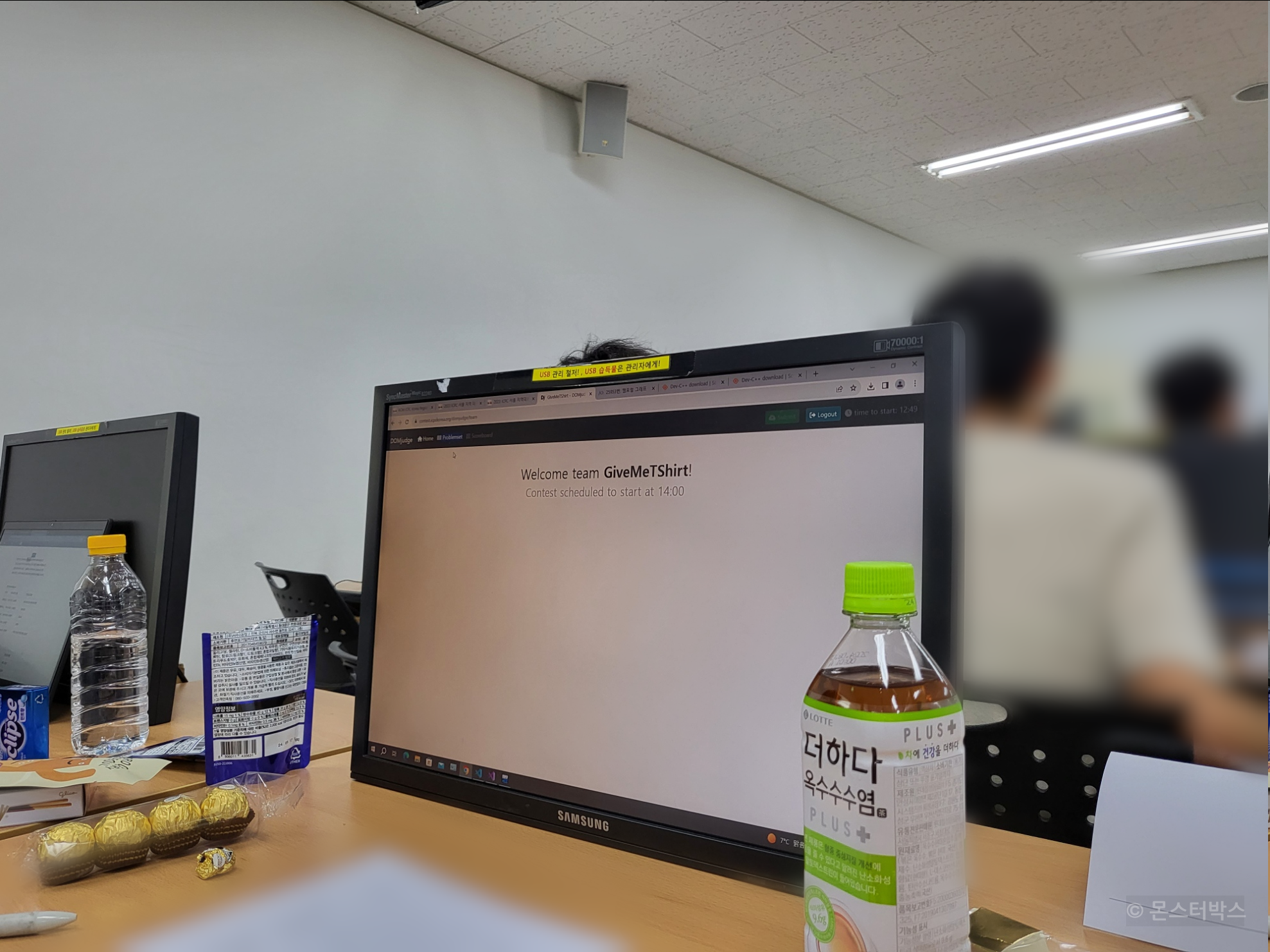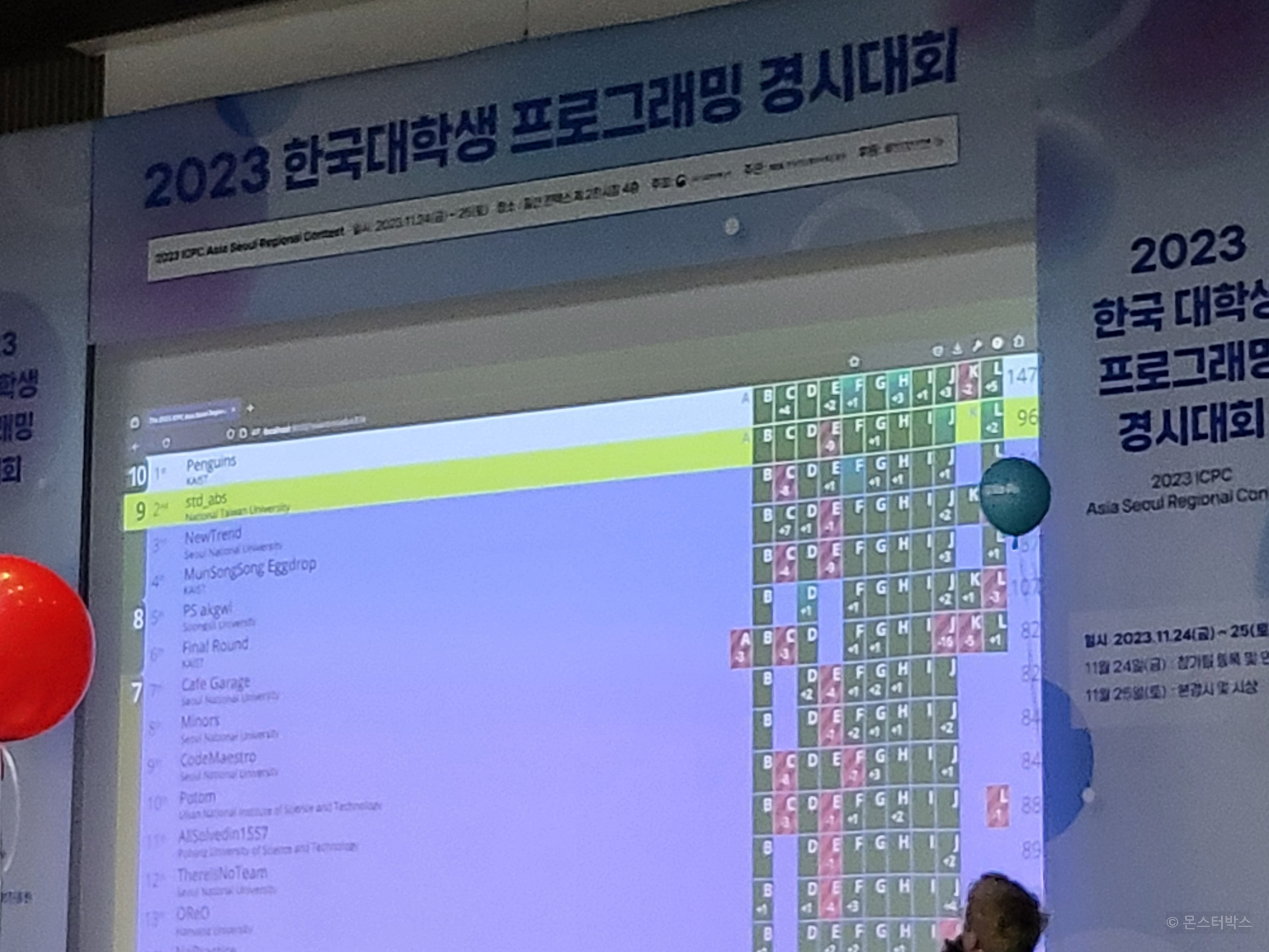 문제를 푼 팀이 나오면 풍선을 잘라서 팀 책상까지 가서 묶어주는 일들이 꽤나 힘들었는데요