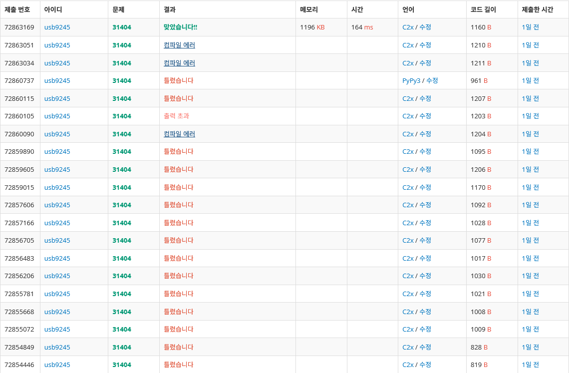 C번은 분명 맞게 구현을 했는데 아무리 해도 '틀렸습니다'가 나와서 머리를 아프게 했던 문제였습니다