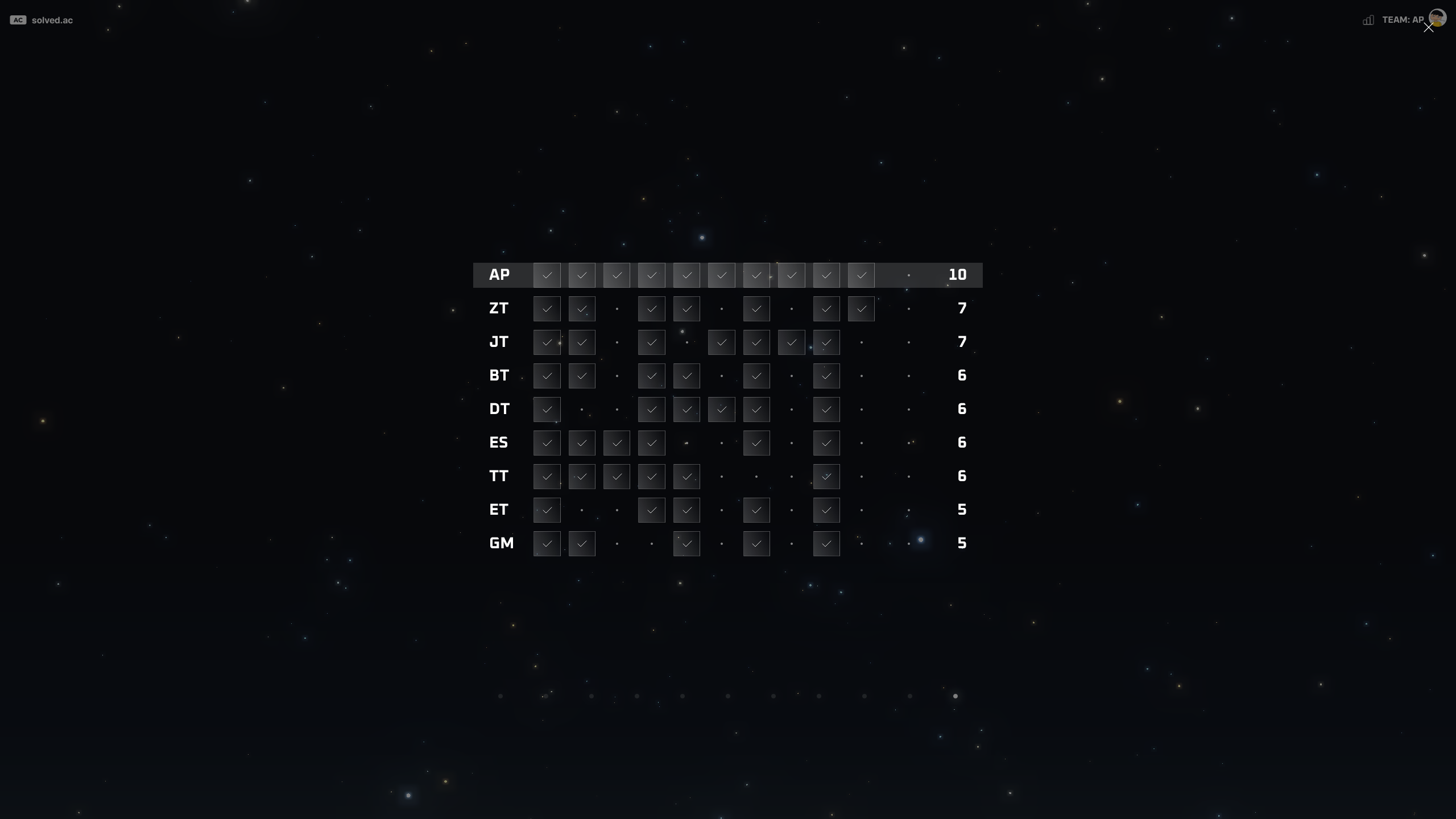제가 소속된 'AP'팀은 11문제 중 10문제를 맞췄습니다