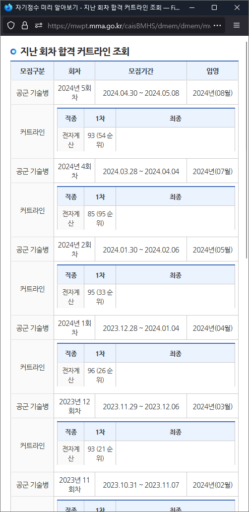 그래서 가산점을 최대한 모아서 올해 7월 입대를 써봤습니다
