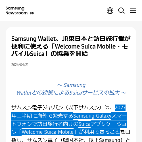 심지어 며칠 전에 27년 이후 해외발매 갤럭시에 Suica 대응 뉴스까지 떠버려서