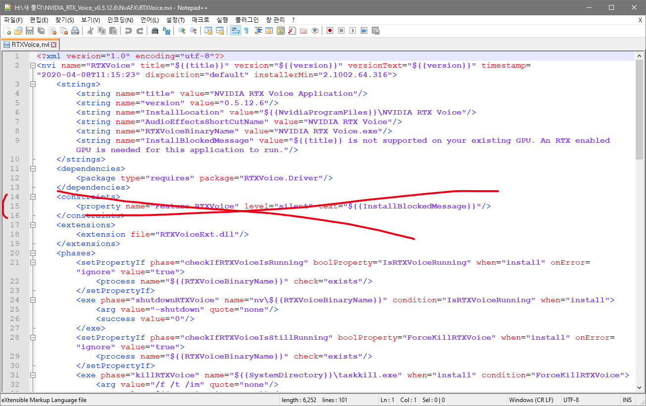 그리고 RTXVoice.nvi 파일을 텍스트 편집 프로그램을 사용하여 열어줍니다.