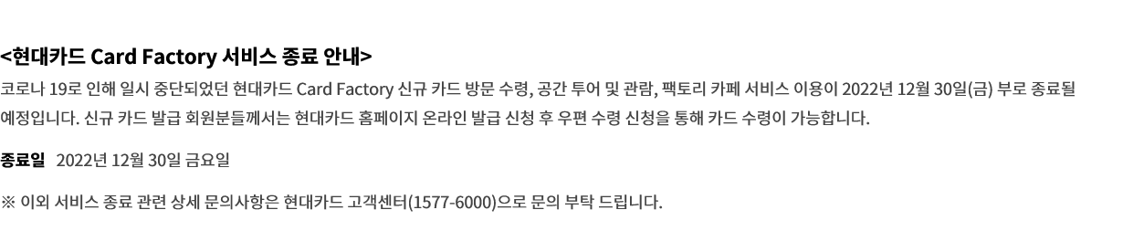 그 후 발급이 완료되면 여의도에 있는 현대카드 카드팩토리로 가서 받으면 됩니다.