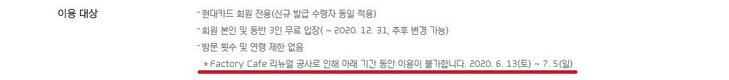 다만 리뉴얼 공사로 인해 2020년 6월 13일부터 7월 5일까지는 이용이 불가하다고 합니다.