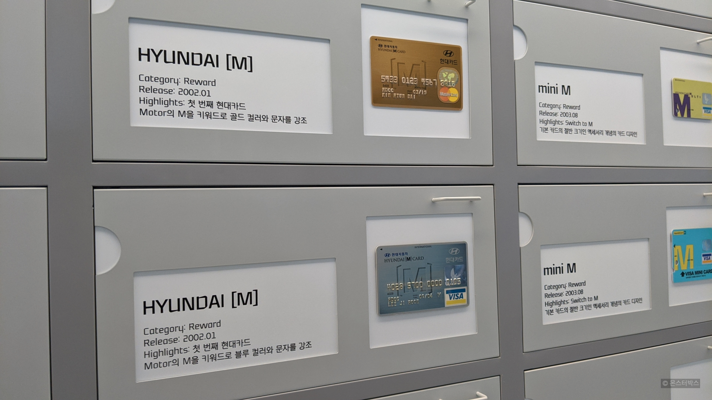 들어가 보면 지금까지 현대카드에서 나온 모든 신용카드가 전시되어 있는 것을 볼 수 있습니다.