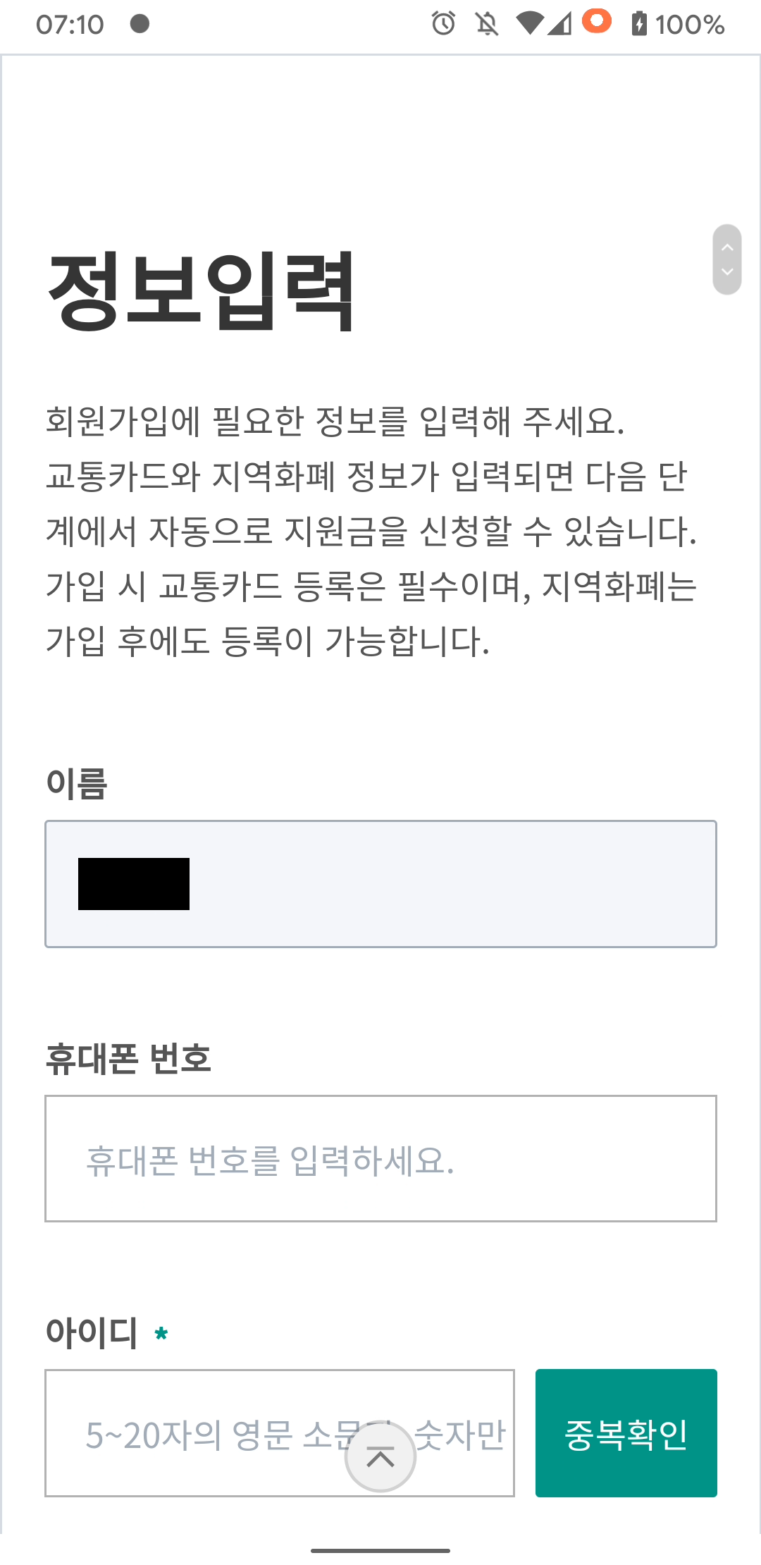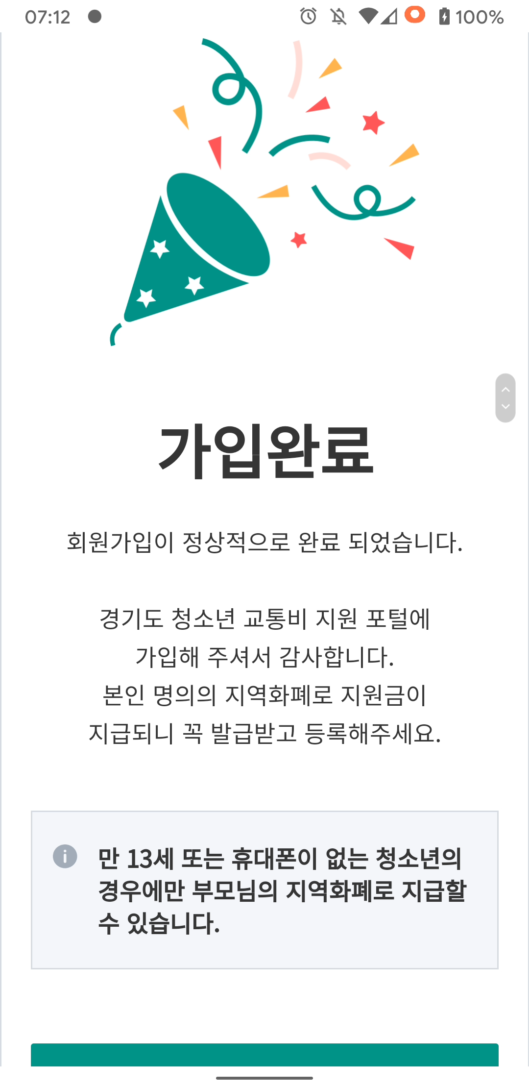 그리고 신청을 누르면 회원가입과 지원금 신청이 모두 완료됩니다.