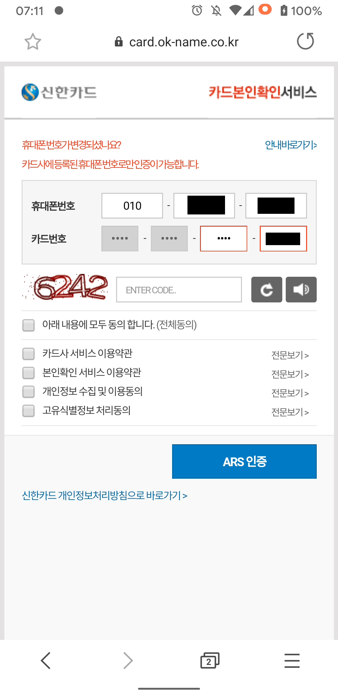 휴대폰번호와 카드번호는 자동으로 입력되고, 앱카드 인증은 안되는듯 합니다.