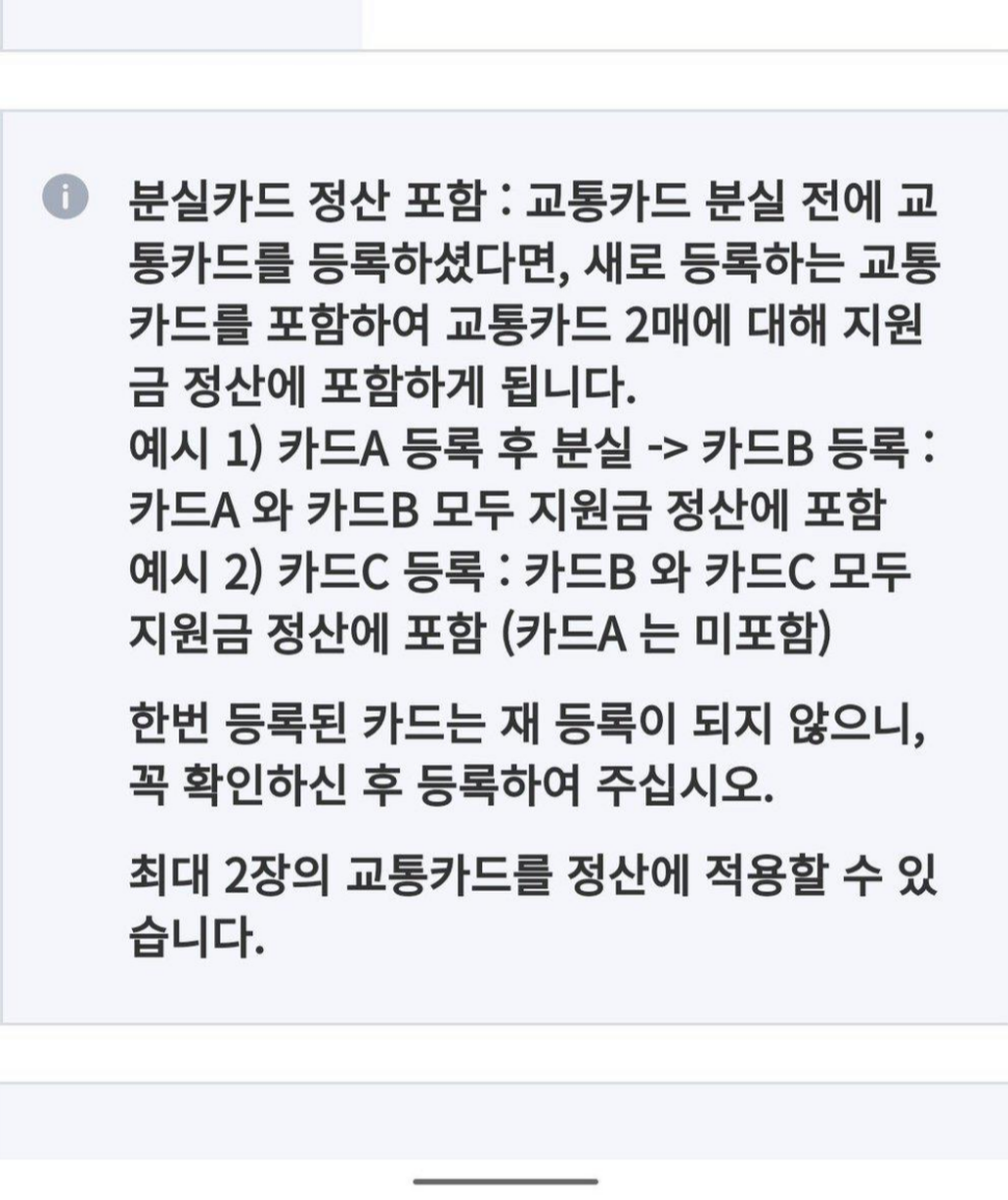 참고로 교통카드는 하나두개만 등록이 가능합니다.