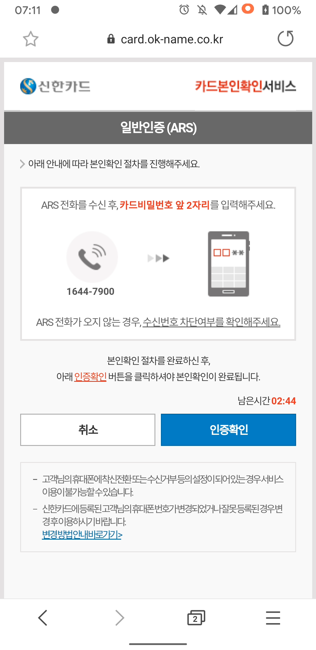그리고 후불교통카드의 경우에는 ARS 인증을 진행합니다.