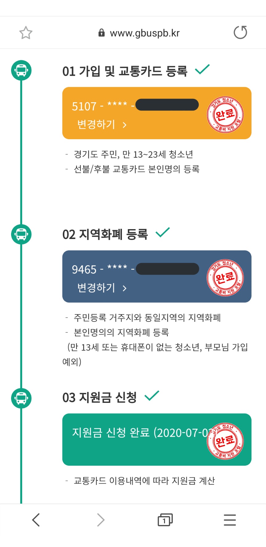 당연하지만 '경기도' 청소년 교통비 지원이기 때문에 경기버스 이용 실적만 인정됩니다.