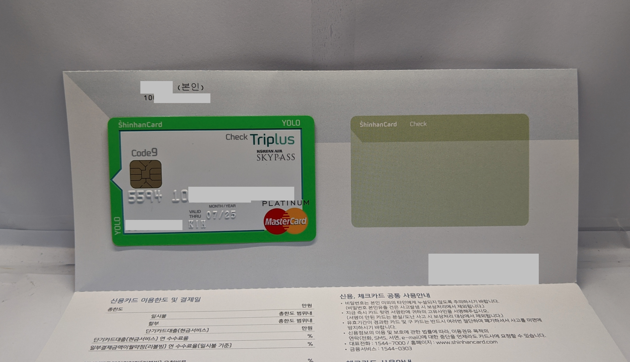 오늘은 신신한 YOLO Triplus 체크를 스카이패스 버전으로 받아왔습니다.