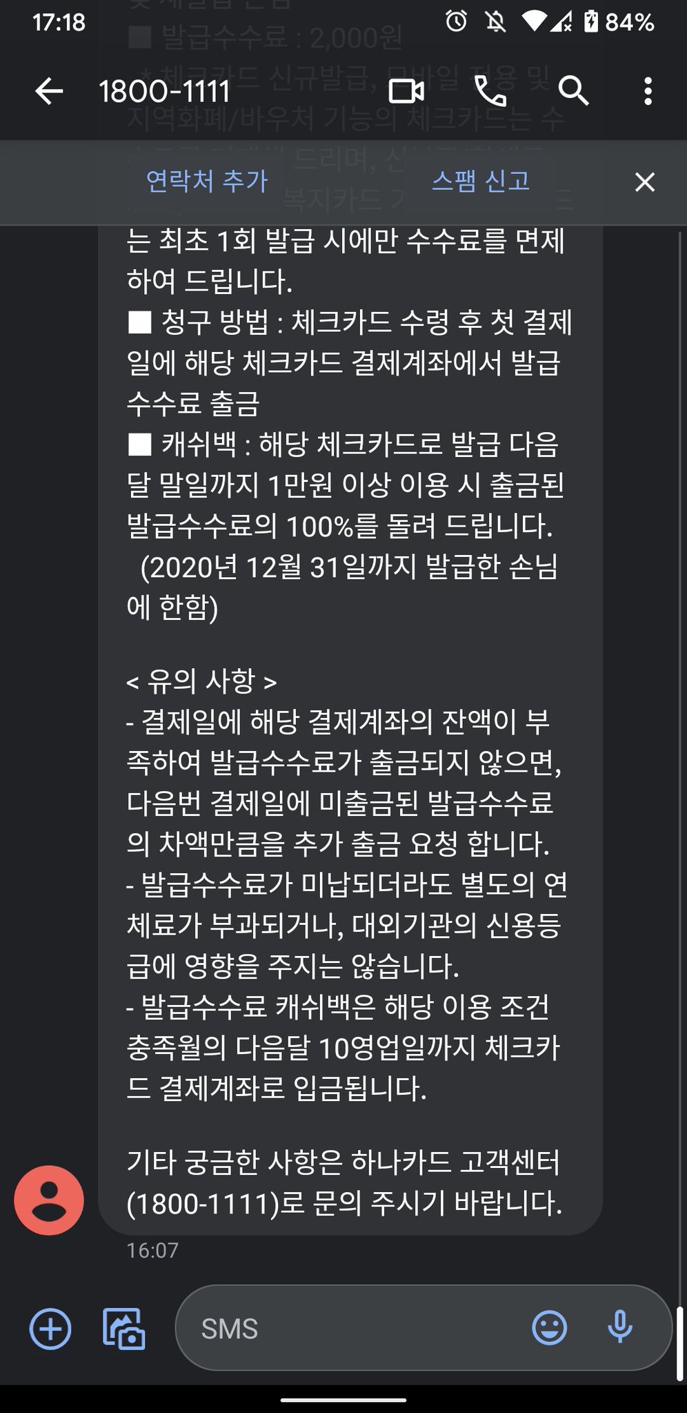 특이하게 발급 수수료는 내지 않아도 연체가 되지는 않는다고 하네요. 물론 카드사 내부 등급이 어떻게 될지는 아무도 모르지만요...