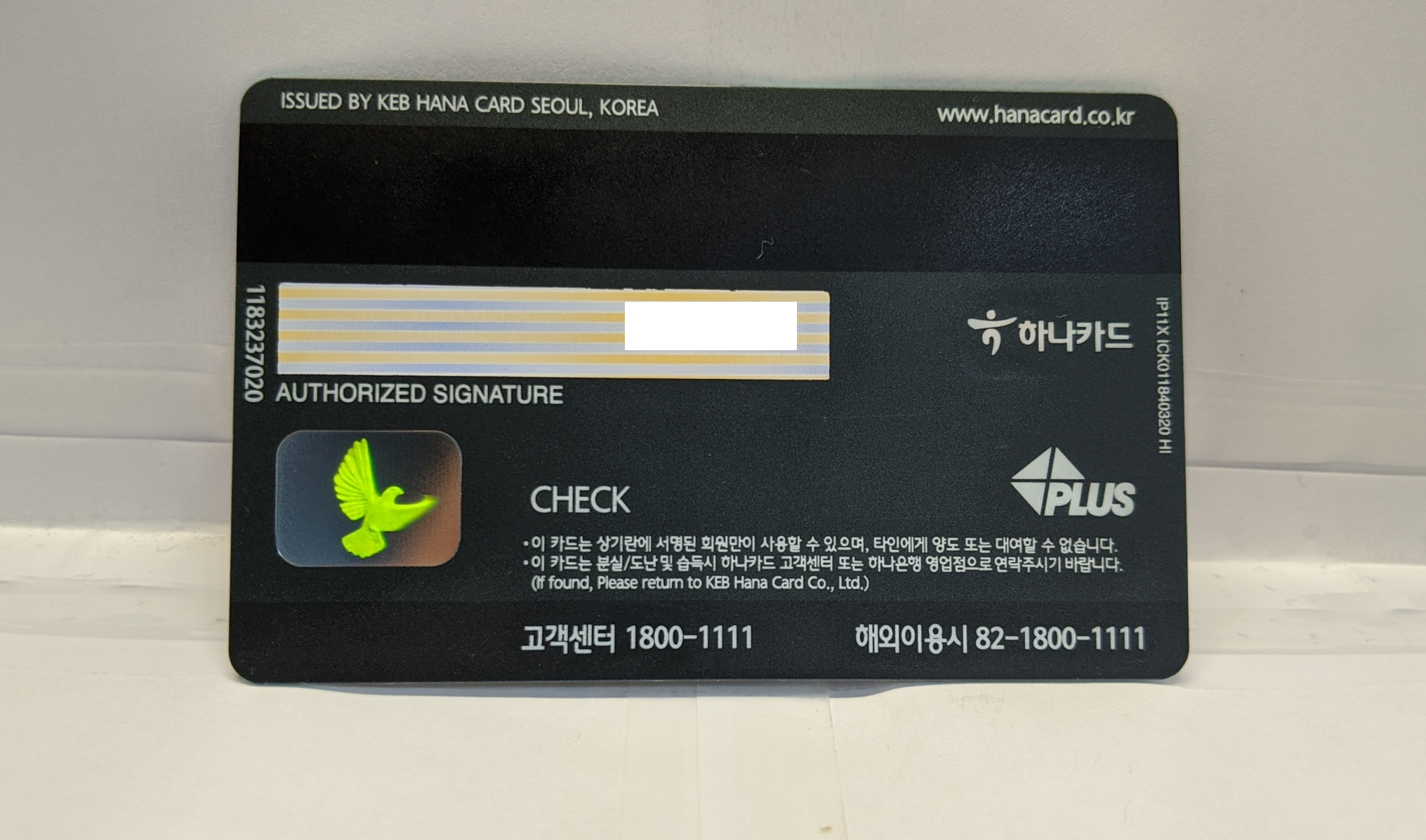 특이하게 비자의 현금카드망인 PLUS 로고가 있습니다. 다른 하나 비자카드도 있는지는 모르겠으나, 타 카드사에는 넣지 않는 로고라 신기하네요.