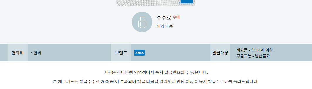이 카드만 하나은행 영업점에서 즉시 발급받을 수 있다고 나와있는데, 은행 즉발이 아닌 인터넷/고객센터에서는 아예 발급이 안된다는 뜻이었다니(...) 이걸 나도 모르고 발급 진행해주신 은행원님도 몰랐던걸 보니 제대로 안내 안 하는듯