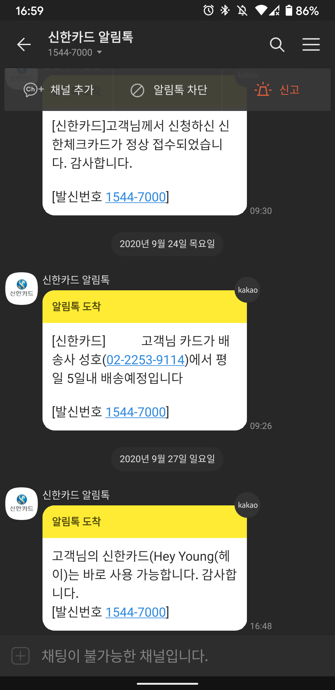 오늘은 일요일이라 카드가 안 올 거라 생각하고 있었는데, 갑자기 문자로 카드가 온다고 하는 겁니다 ㄷㄷ