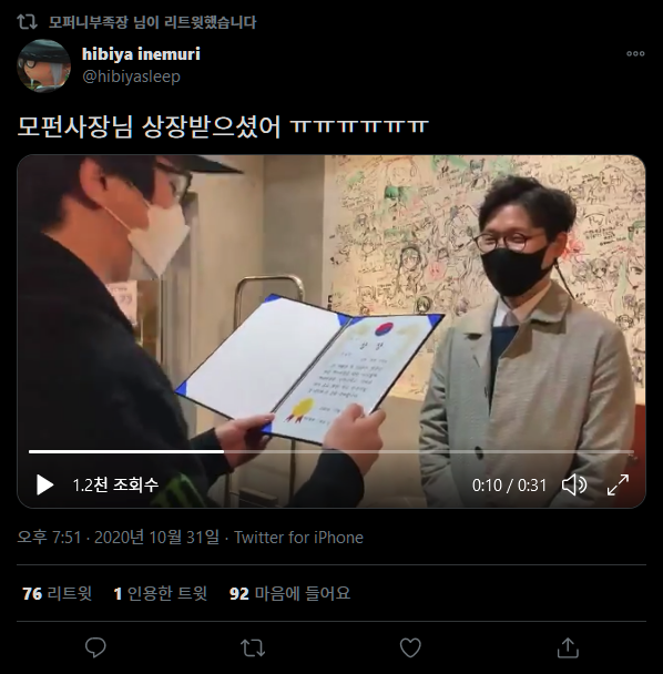 사장님이 상장을 받으실 때 사람들이 저보다도 더 폐업을 아쉬워한다는 게 느껴졌습니다.