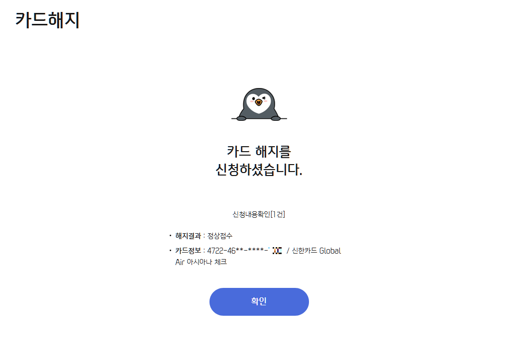 이제 해지한 카드는 알아서 버리시거나 하면 됩니다.