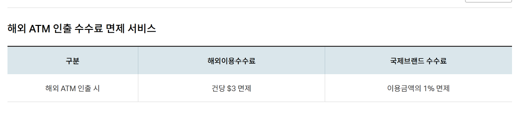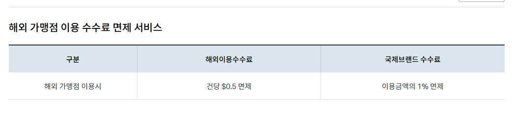 이 카드의 혜택을 간단히 설명하면 해외 수수료 완전 면제 카드라고 할 수 있습니다.