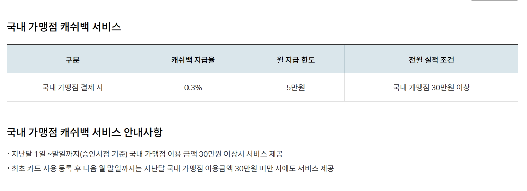 국내 혜택도 있는데, 전월실적이 30만원이라 의미가 없다고 생각하면 편합니다.