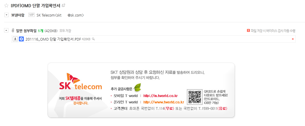그 후 전화를 끊을 때쯤이면 이런 문자가 날아옵니다.