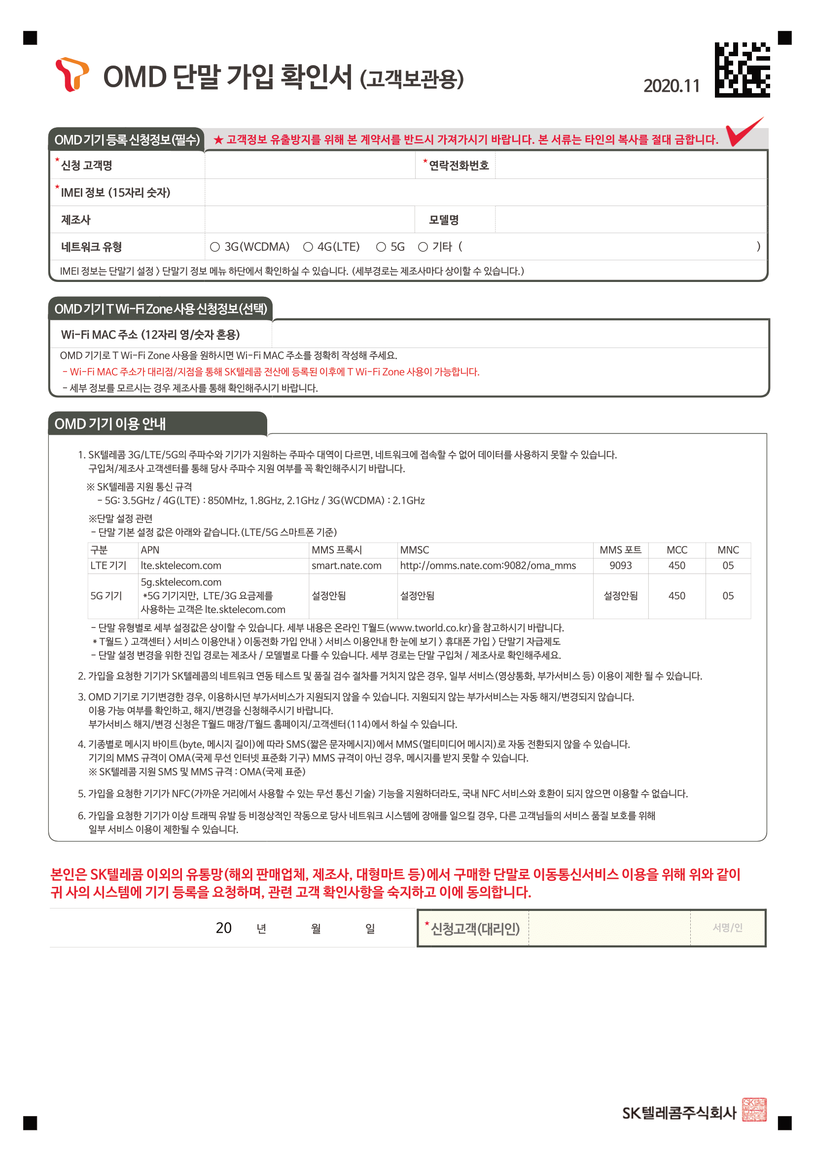 그런데, 작년 10월에 SKT로 통신사를 바꾸어서 새로 OMD 등록을 해야 했습니다.