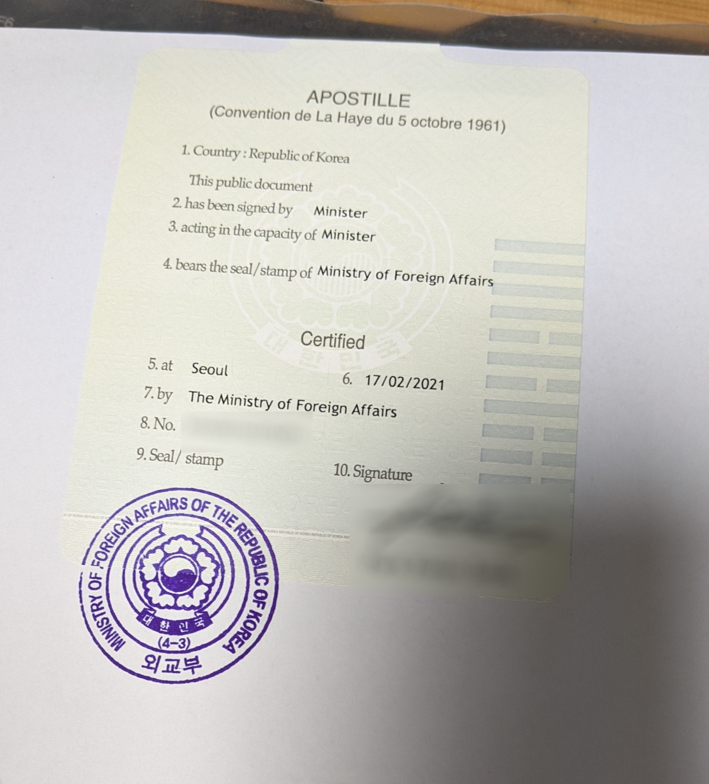 아무튼 기다리면 뒤에 이런 아포스티유를 붙여줍니다.